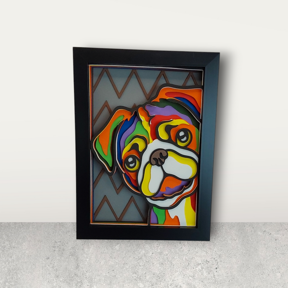 Pug 'Pug Life' - Layered 3D Wall Art - Framed